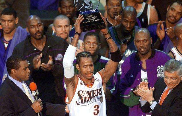 在那一个赛季的全明星赛上,艾弗森得到25+2+5的数据,赢得全明星赛的AMVP奖杯!所以艾弗森是NBA历史上第一个做到常规赛MVP+得分王+抢断王+全明星MVP的球员。要是艾弗森那一年的季后赛能够在总决赛上击败拥有OK组合的湖人王朝,头衔就再加多一个总冠军+总决赛FMVP,无敌完美的荣誉!