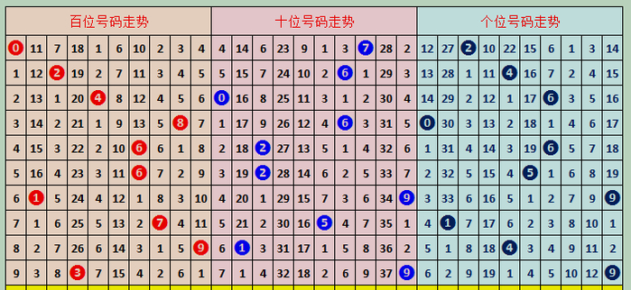 近10期012路比总比例为15 : 8 : 7,0路号码出号较热,上期开出012路比为3 : 0 : 0;本期预测012路比1 : 1:1。